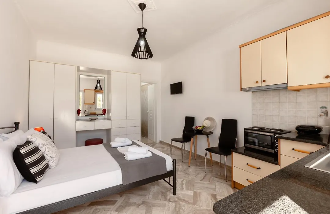 Este alojamiento también dispone de una pequeña cocina. Los viajeros podrán disfrutar de la cocina mediterránea que se sirve en el restaurante Zafora Restaurant, ubicado a alrededor de 5 minutos a pie. La parada de autobús Taxi se encuentra a 10 minutos a pie del Agapi Studio.